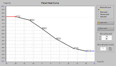 | Nejnižší venkovní teplota rozsahu topné křivky | Osa X - Nejnižší venkovní teplota rozsahu topné křivky |