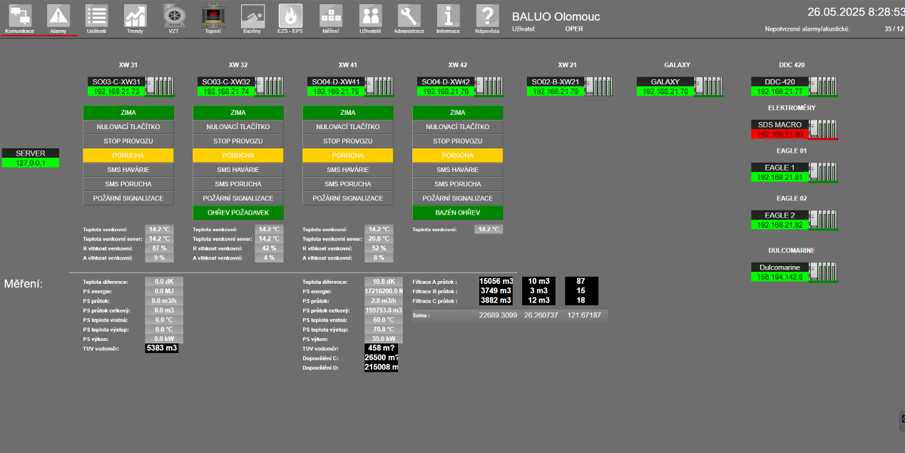 In the buildings of the BALUO Application Centre in Olomouc a comprehensive building technology management system (BMS - Building Management System) is implemented. In the core of it is the PROMOTIC SCADA system. This system ensures effective monitoring and control of technologies associated with heating and heat exchange stations and monitoring of pool technology in individual buildings of the centre.