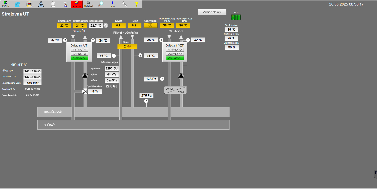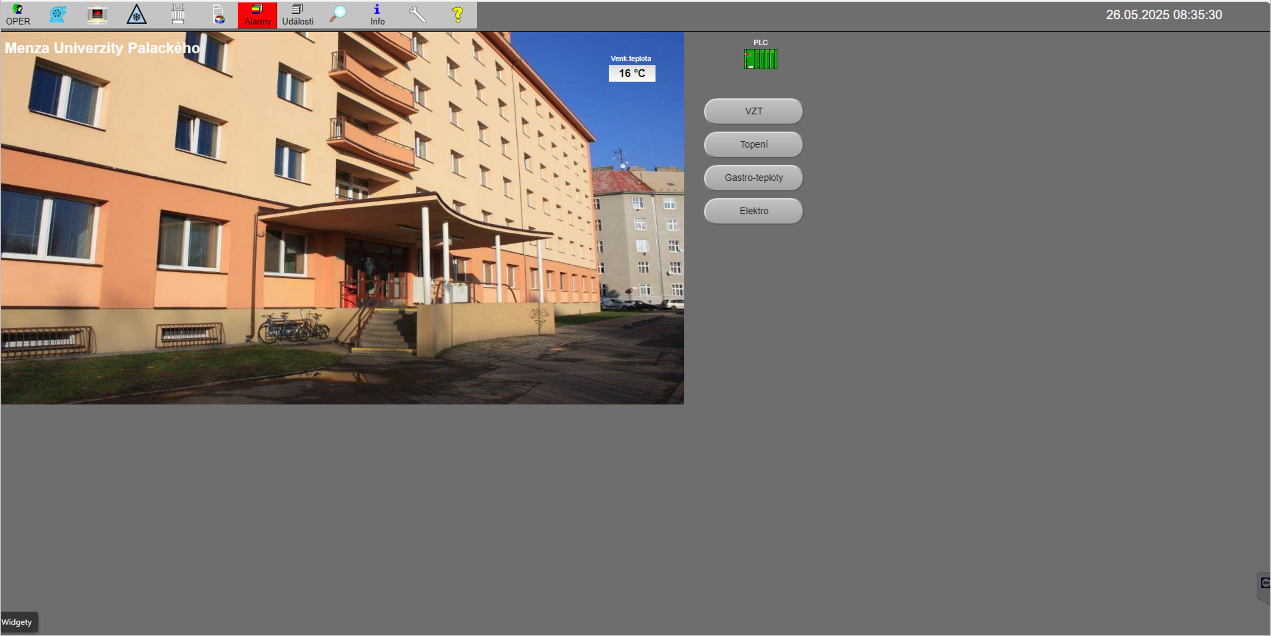 In the buildings of Palacký University in Olomouc a comprehensive building technology management system (BMS) is implemented. In the core of which is the PROMOTIC SCADA system. This system provides effective monitoring and management of technologies associated with heating and heat exchanger stations in individual buildings of the university.