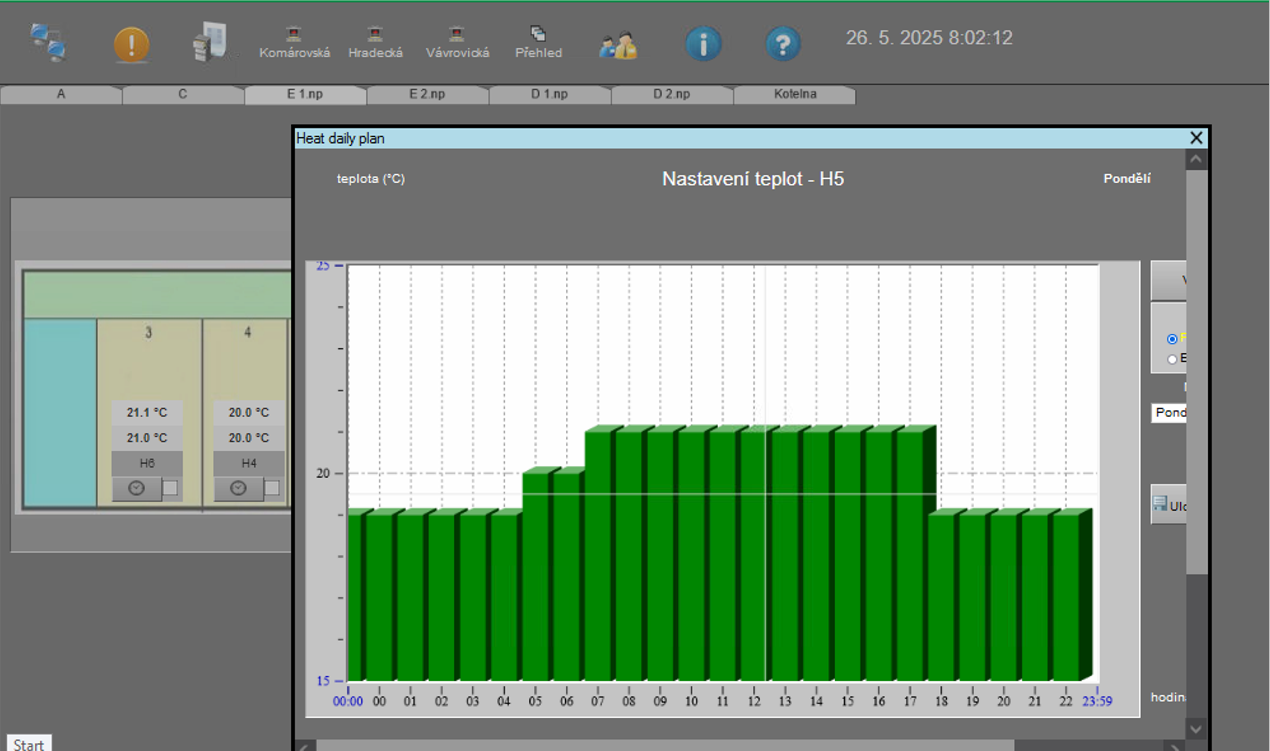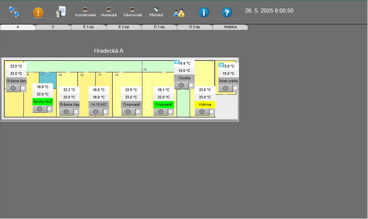 PROMOTIC provides supervision over the operation of heating systems in individual university buildings, including monitoring of current temperatures, pressures and flows in the system. The operators have access to real-time data and historical trends, allowing energy consumption to be optimised.