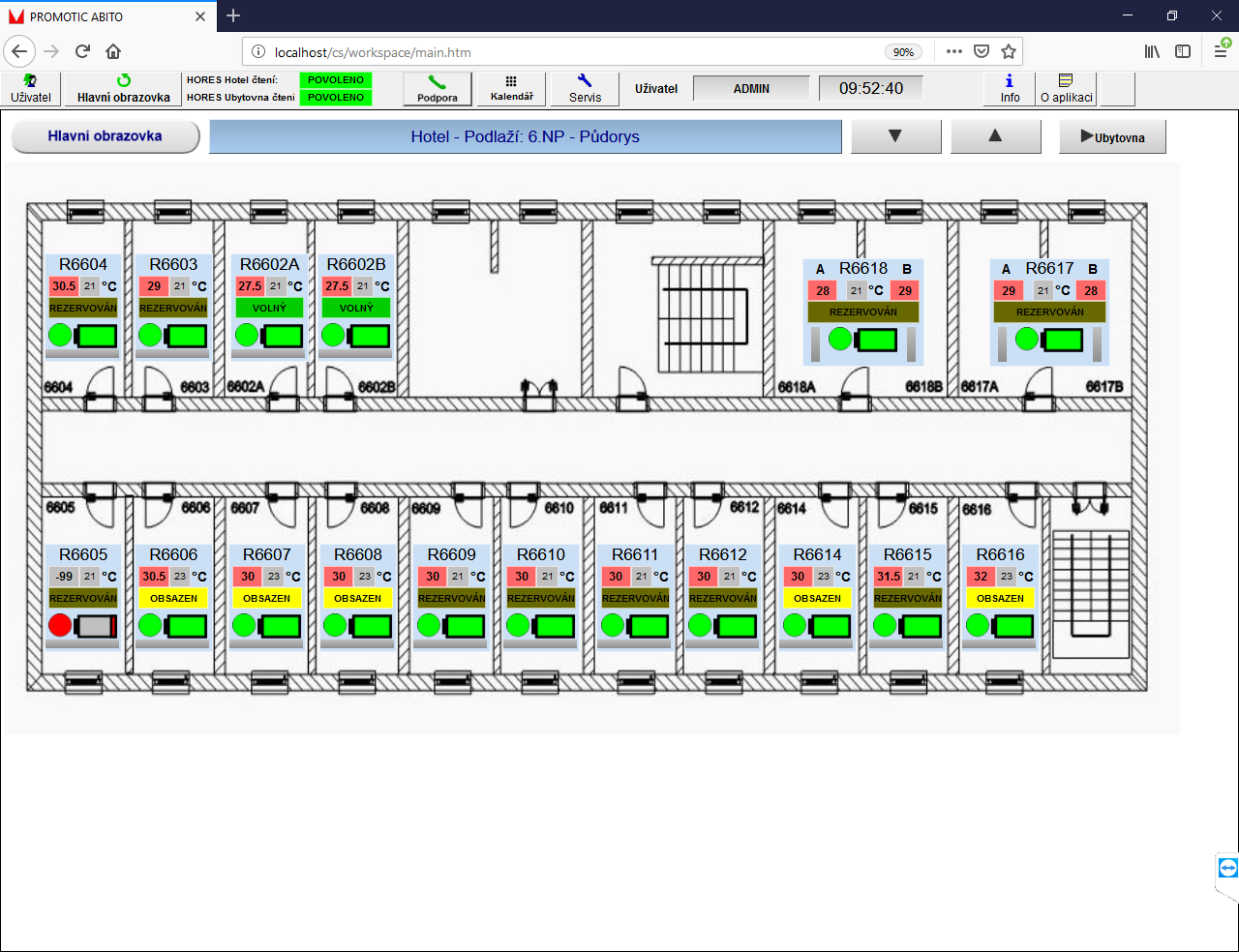 - Dyspozytorski system PROMOTIC we współpracy z systemami sterującymi eLAN iNELS zapewnia monitorowanie oraz sterowanie ogrzewaniem pokoi w hotelu Abito w Pradze. Pokoje znajdują się w 2 budynkach: część hotelowa oraz hostel.
