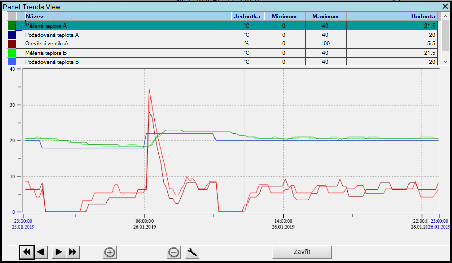 - Dane archiwalne można w dowolnej chwili graficznie przeglądać oraz wyświetlać historyczny przebieg temperatur